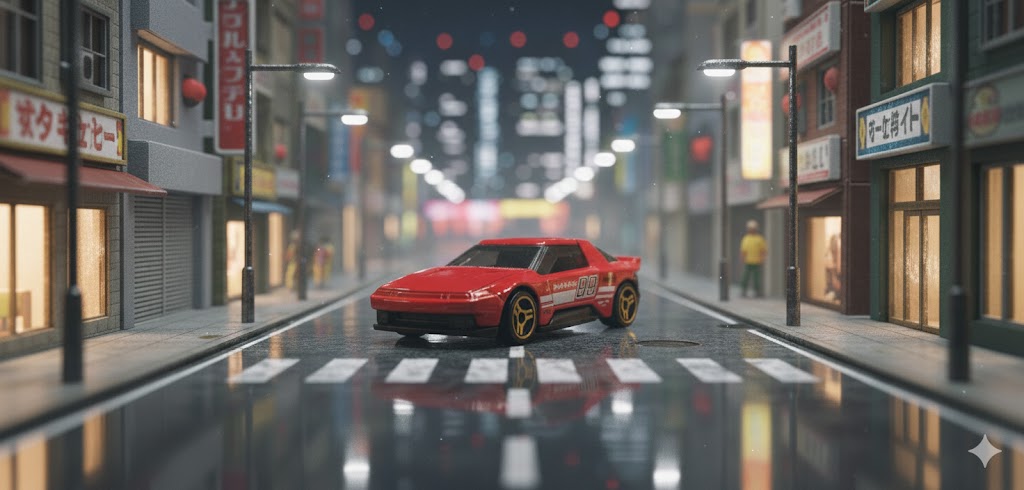 Este modelo é uma peça indispensável para quem coleciona miniaturas Hot Wheels com temática japonesa e design inovador. Seu corpo metálico garante durabilidade, enquanto o interior detalhado e rodas em plástico completam a fidelidade ao design original. A combinação de cores e elementos cyberpunk faz deste coupé um destaque para qualquer vitrine.