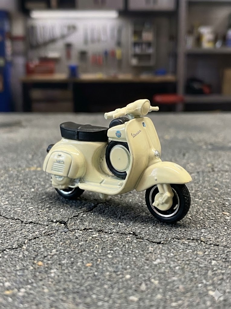 Apresentamos a miniatura Hot Wheels da clássica Vespa 90 SS Super Sprint 1966, um verdadeiro ícone da coleção HW Moto, lançada em 2025 na série Mainline (Sortimento C4982). Este modelo exclusivo, pintado em branco com detalhes impressionantes, é perfeito para quem valoriza qualidade, tradição e design detalhado.